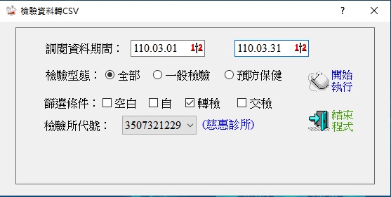 例如:提供檢驗單位由診所端申報檢驗費(型態為轉)的項目,篩選條件勾選『轉檢』