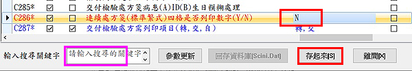 編號C286「連續處方箋(標準繁式)四格是否列印數字(Y/N)」