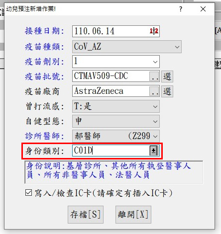 更版功能:配合COVID-19疫苗接種WEB批次資料上傳格式轉出新增身分別代碼點選欄位
