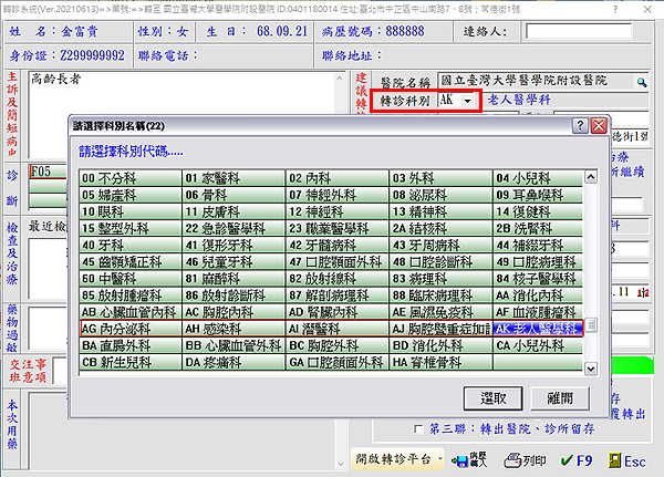 醫聖電子轉診系統如何顯示所有公告轉診科別代碼
