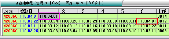 【上述療程日期混亂查看確認動作,亦可於掛號修編畫面下方的復健療程列進行處理】