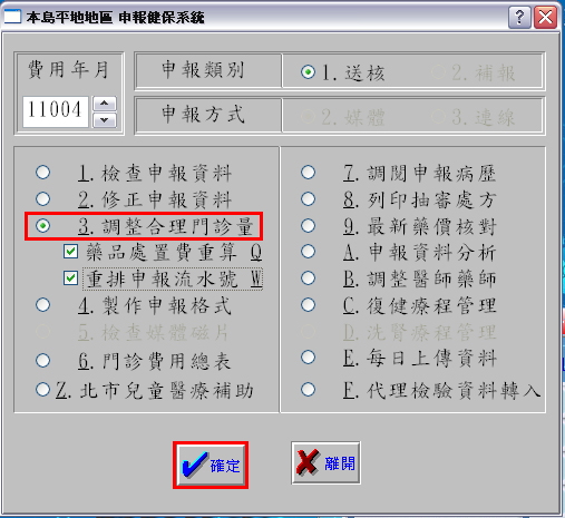 更版功能:修正執行『9申報作業』「3.調整合理門診量」