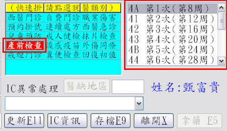 快速掛號選單『產前檢查』新增掛入就醫序號為「IC4A、IC4B、IC4C、IC4D、IC4E」點選項目