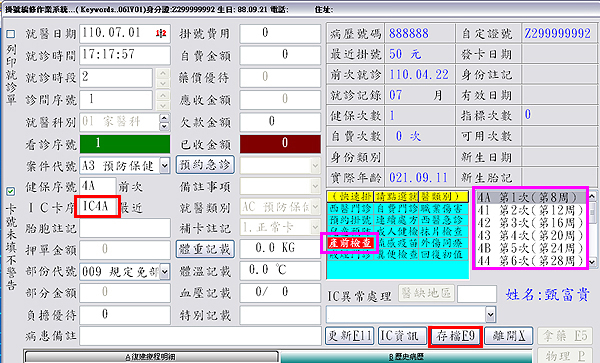 配合110年7月1日起增加產檢次數及項目新增就醫序號「IC4A、IC4B、IC4C、IC4D、IC4E」掛號選單及申報功能