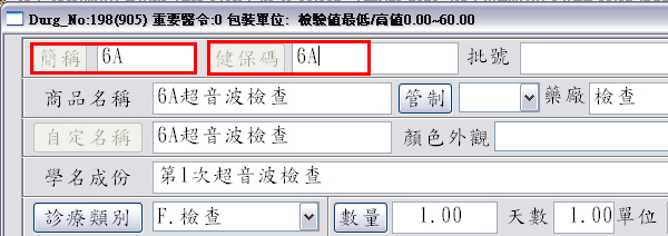 簡稱欄位可自定,健保碼欄位請輸入醫令代碼『6A』或『6B』或『6C』或『6D』