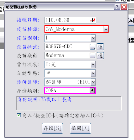 新增預注畫面如下圖示,於疫苗種類即可點選完成新增疫苗代碼品項