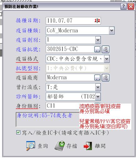 ● 配合API介接功能,預防接種資料登錄畫面新增欄位異動如下,原軟體操作方式不變