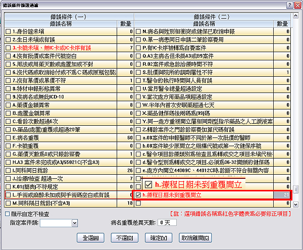 更版說明:於『9申報作業>1.檢查申報資料』內新增篩選項目『療程日期(限)未到重覆開立』