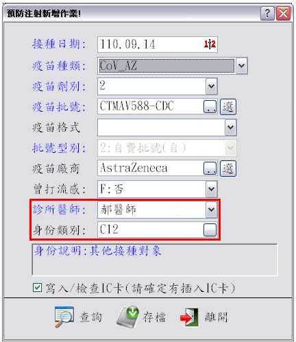 『身份類別』欄位配合COVID-19疫苗注射身分別轉檔要求