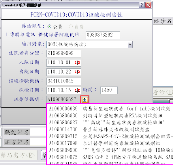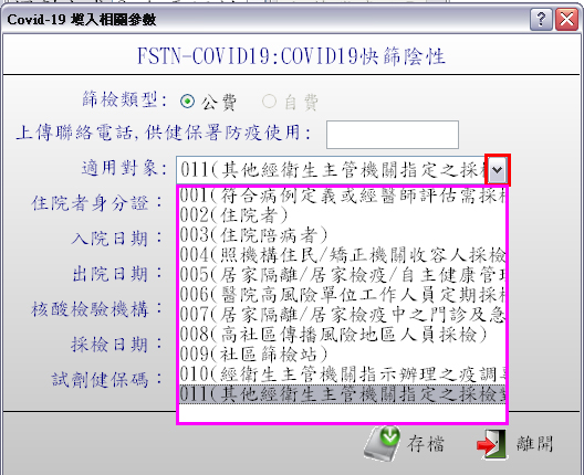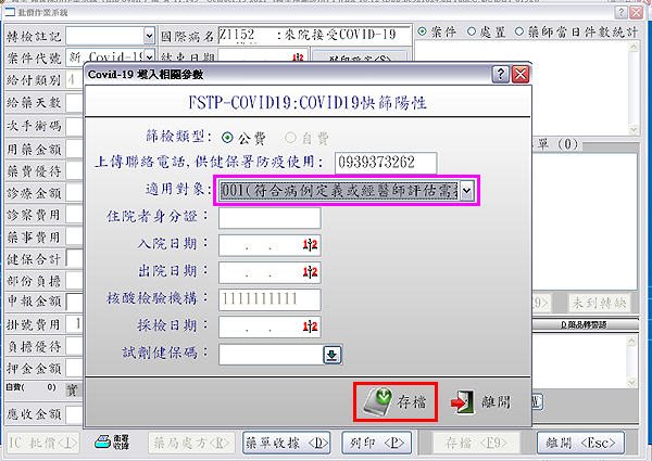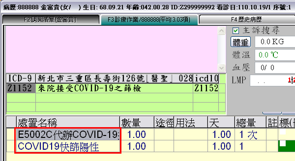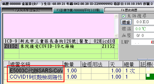 於『案件代號』點選『新 Covid-19』,再按下『F9存檔』
