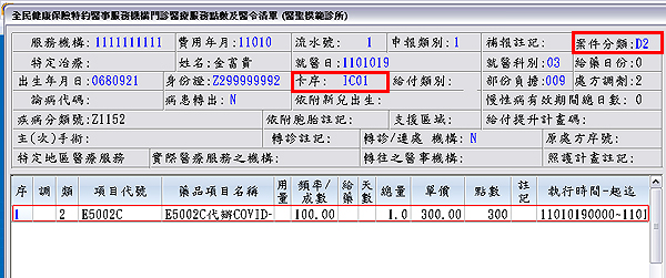 2. 於F3診療作業,輸入當次申報檢驗醫令『E5002C』或『E5005C』及