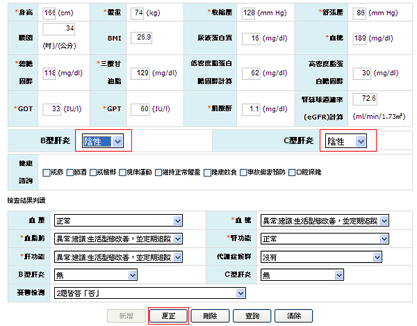 【操作說明如上述1-5步驟】,確認每一筆資料『B型肝炎』『C型肝炎』欄位已呈現(陰性或陽性)