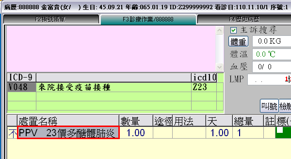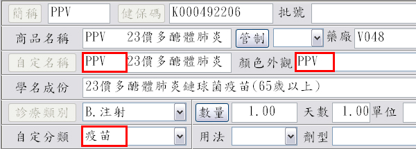 1. 確認系統藥品資料是否已建立PPV疫苗品項