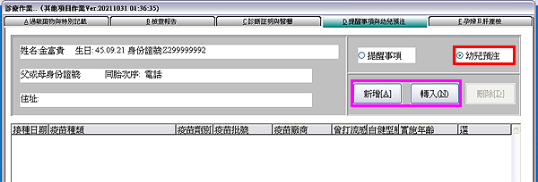 或於F3診療作業畫面點選「D 提醒事項與幼兒預注」項目