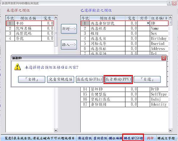 接著點選『轉疫苗CSV檔』,再按下『長者肺鏈』即完成轉檔