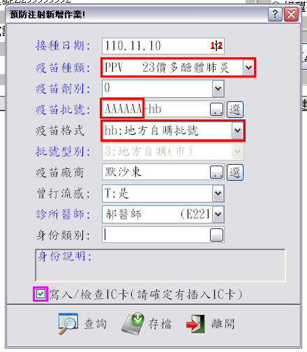 縣市自購65-74歲長者肺炎鏈球菌疫苗接種紀錄醫聖診療系統操作方式