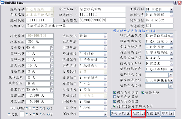 進入醫療院所基本設定畫面,如下圖示,點選『進階』