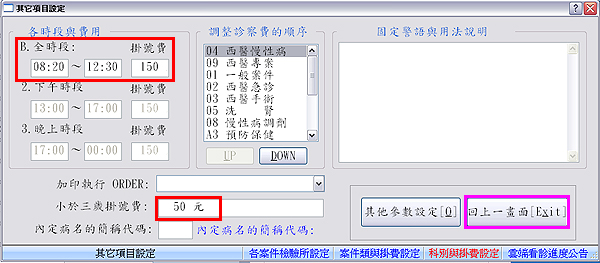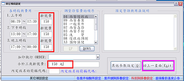掛號費修改完成後,按下「回上一畫面」回到醫療院所基本設定畫面,再按下「存檔」即可