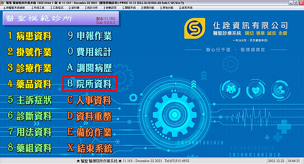 要調整掛號費當日開診前,於醫聖診療系統主畫面進入『B 院所資料』