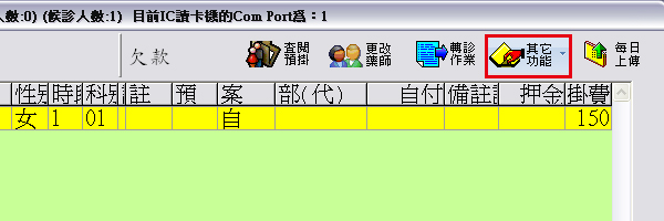 --於『2 掛號作業』點選『其他功能』操作畫面如下