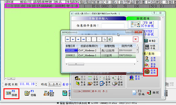 *需使用新版掛號搜尋介面*點選『掛號F2』再點選『疫苗查詢』即可