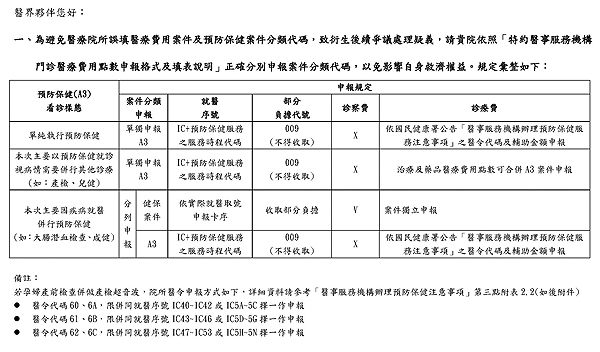 為避免醫療院所誤填醫療費用申報案件及預防保健案件分類代碼,相關規定彙整如檔,請院所正確分別填報