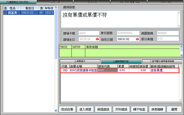 若有『單價為0』的申報醫令代碼會出現在「7.沒有單價或單價不符」項目內