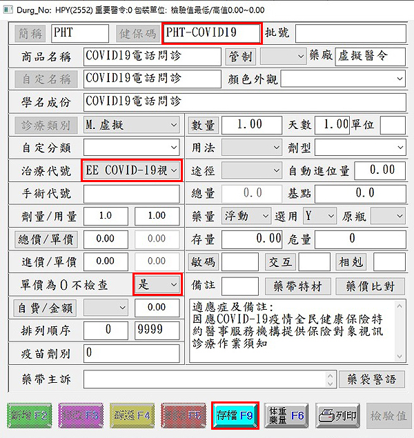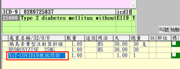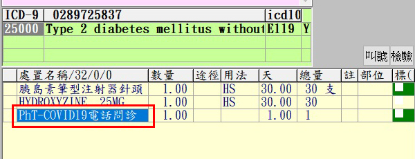 於F3診療作業畫面,若申報案件為電話診療,鍵入虛擬醫令代碼『PhT-COVID19』