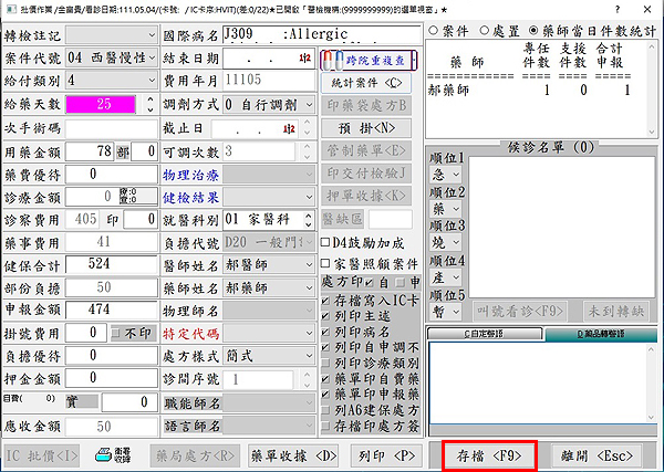 ● 於「F3診療作業」畫面下方按下『F12』或於『4藥品資料』新增虛擬醫令代碼