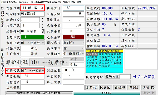 ● 111.05.15 起 一般身分者 掛號畫面 維持原預設跳 部份代號 為 D10