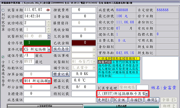 部分代號會自動跳『914 』;無卡掛號異常處理代碼請點選『HVIT』,再按下『存檔F9』