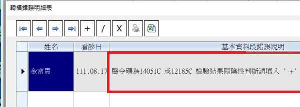 若上傳檢驗醫令碼為14051C或12185C且結果欄未填入陽陰性判斷時