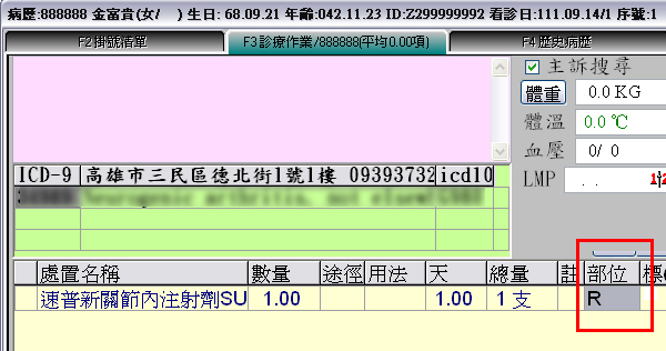 於「部位」(紅框處)填入R(右側)、L(左側)或B(雙側)即可!