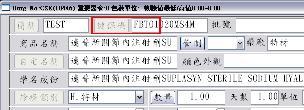 於『F3診療作業』,如下圖示,申報特材品項前五碼為『FBT01』(關節內注射劑)時