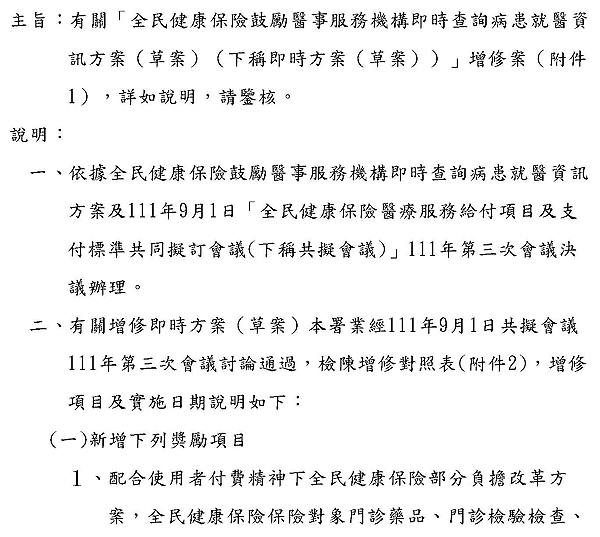 全民健康保險鼓勵醫事服務機構即時查詢病患就資訊方案