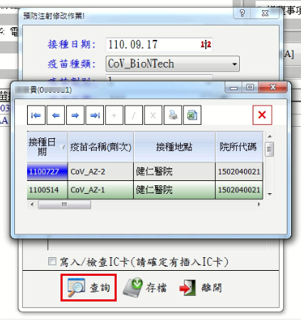 -- 免健保卡,點選『查詢』即可查詢個案預防接種紀錄,如下圖示