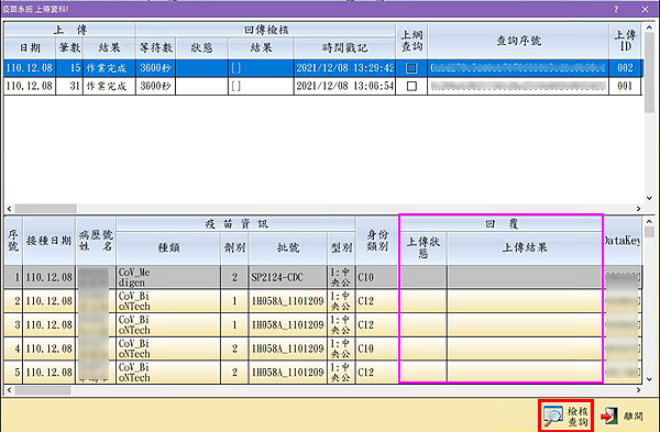 2. 刪除資料上傳成功後,於一小時後再至「上傳檢視」功能內點選「檢核查詢」