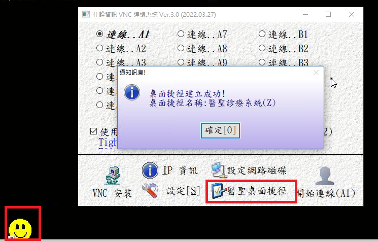 A:開啟醫聖快速連線,如下圖示,點選『醫聖桌面捷徑』即可自動建立