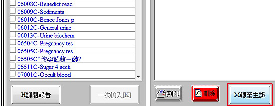 二、於『B 檢查報告』下方,點選『M 轉至主訴』可開啟『檢查項目轉入主訴選擇』畫面。