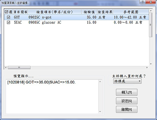 新增可將病患檢驗報告資料轉入F3診療作業主訴編輯區功能