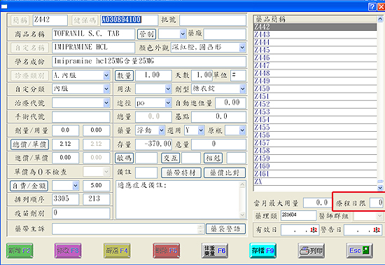 新增設定說明:於『4藥品資料』要設定的藥品資料右下方『療程日限』欄位內輸入『數值』。 |
