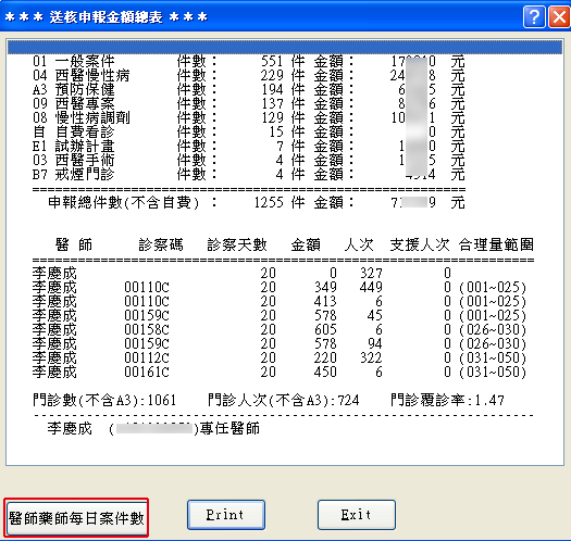 申報前可再加強檢查『醫師藥師每日案件數』以免誤報未看診醫師