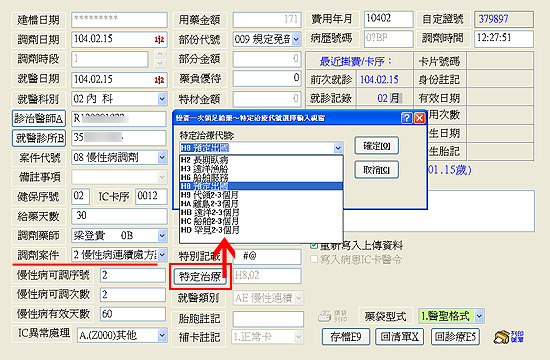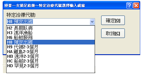 三、本署再次重申:若有一次調劑慢性病連續處方箋2或3個月用藥量之案件時,請於特定治療項目代號(欄位IDd26.27.28.29)填列;預定出國H8、返回離島地區HA,為遠洋漁船船員出國作業HB、國際航線船舶船員出國服務HC、罕見疾病病人HD之代號;爾後相關申報請依「特約交付機構醫療費用點數申報格式之原處方服務機構之特定治療項目代號(欄位IDd26.27.28.29)」欄位,確實正確填寫申報。