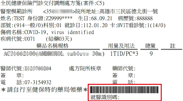 操作說明: 新增交付處方箋列印『就醫識別碼』的『條碼』功能