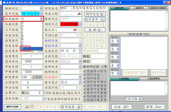 診療操作:批價存檔時,直接於『給付類別』選擇『Y』,再按下存檔。