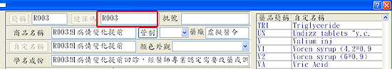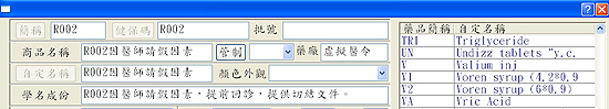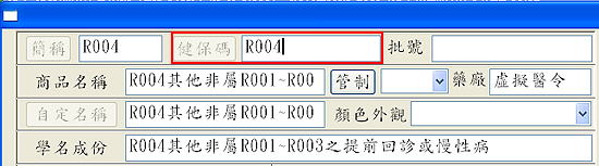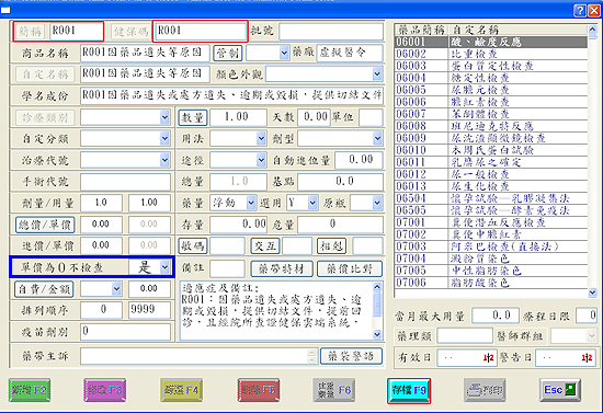 簡稱欄位可自定,健保碼欄位請輸入『R001』或『R002』或『R003』後按下『ENTER』鍵帶出預設資料後,「單價為0不檢查」欄位請點選「是」,再按下『存檔』。 |