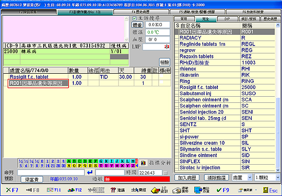 ●於『4藥品資料』或F3診療作業畫面下方按下『F12』可新增虛擬醫令代碼 |