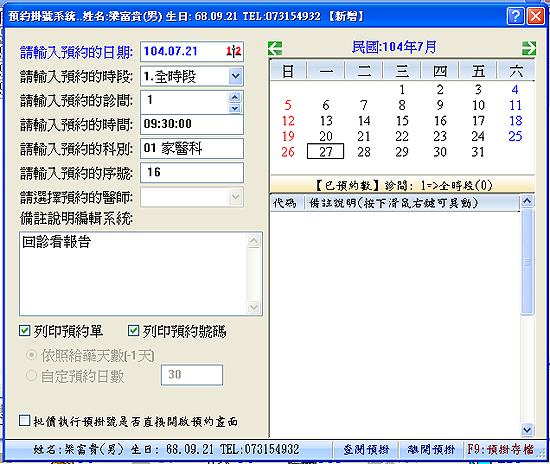 醫聖診療系統新版預約掛號作業操作說明 【內建功能】