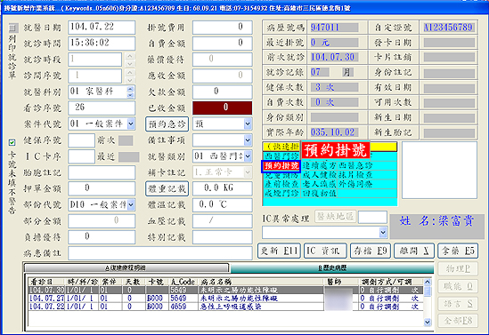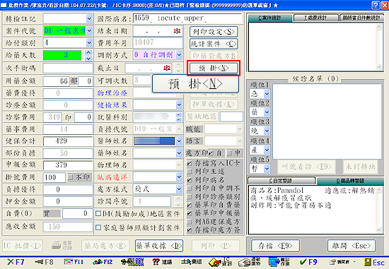 >診療作業執行預掛即為新版預掛程式操作介面(如圖)
