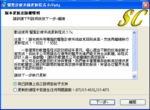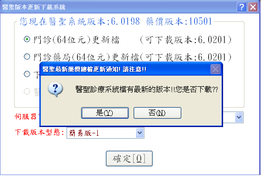 | 步驟四:若您目前使用的醫聖系統不是最新版本會出現如下畫面,請按「是」執行 |